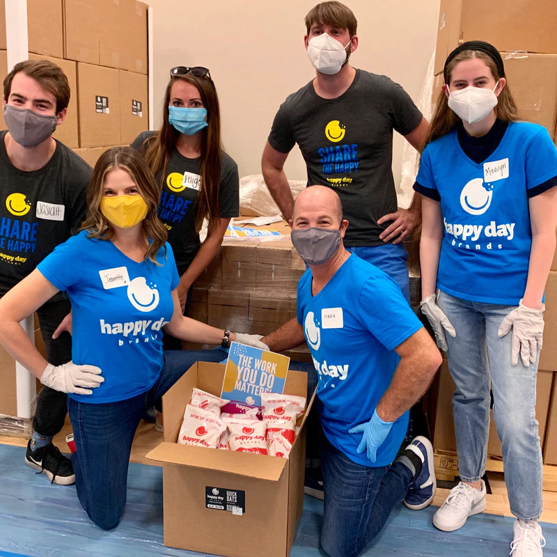 Doing good is at the heart of everything we do at Happy Day Brands. We believe that the things we share in common unite us so much more than our differences could ever divide us. We believe happiness and doing good go hand in hand. We believe that everyone should be treated with kindness, respect and dignity. We believe in giving what we have when we can where we are. We believe in sharing a happy!